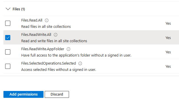 | SharePoint Online and OneDrive for Business | Microsoft Graph | Directory.Read.All | Application and Delegated |