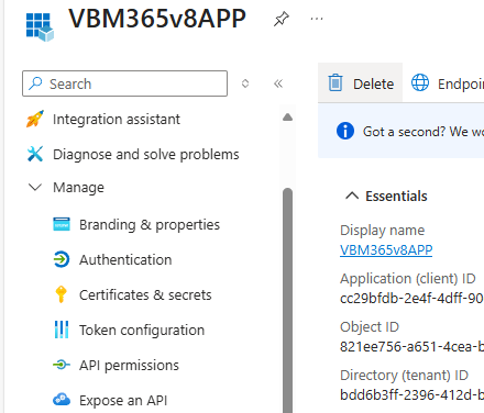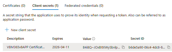 84. Copy the Value, it will be needed for the Application secret of Veeam Backup for Microsoft 365 settings.