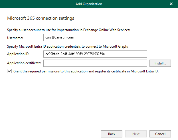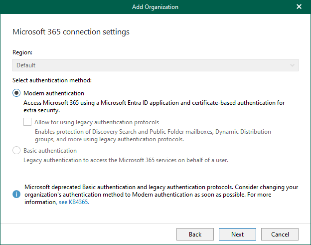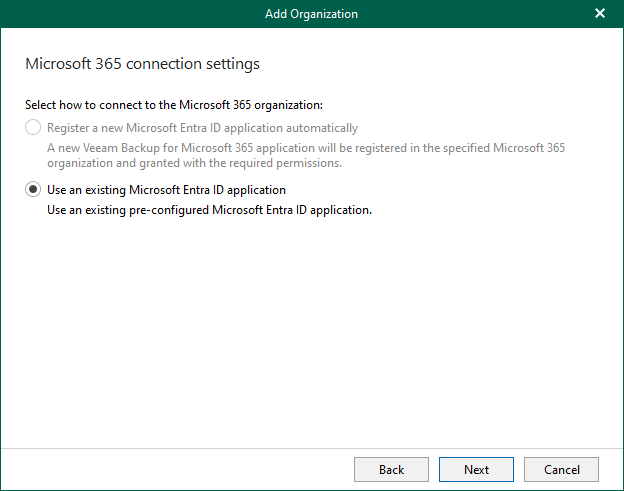 When you add an organization using the modern app-only authentication method, Veeam Backup for Microsoft 365 automatically grants permissions for Microsoft Entra applications.