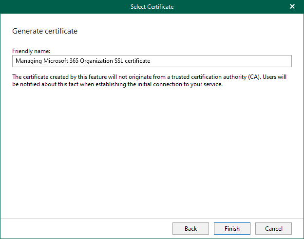 95. Enter the Friendly name of the certificate on the Select Certificate Page and click Finish.