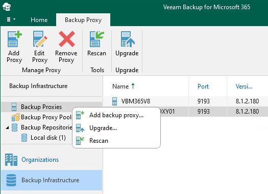 4. On the Backup Infrastructure page, right-click Backup Proxies and select Add backup proxy.