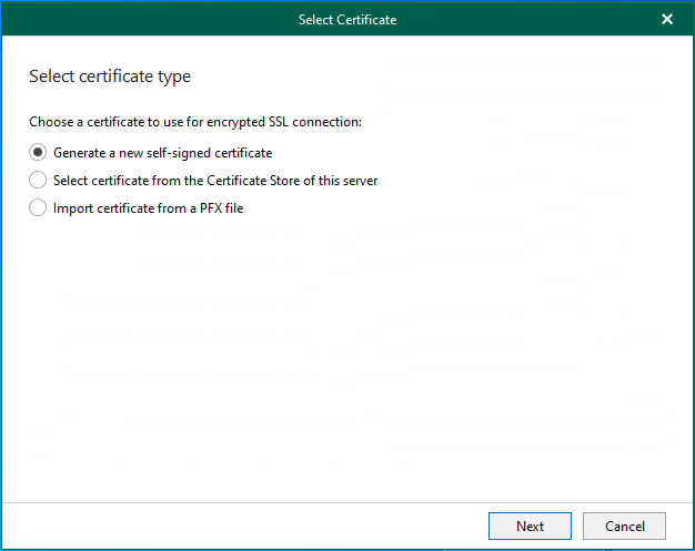 71. Select Generate a new self-signed certificate on the Select certificate type page and click Next.