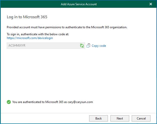74. On the Log in Microsoft 365 page, click copy code and click the sign-in link.
