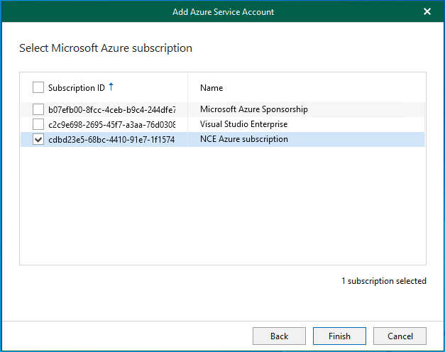 82. On the Select Microsoft Azure subscription page, select your Azure subscription and click Finish.