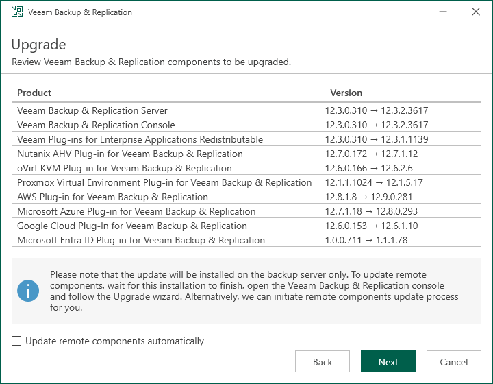 13.Click Upgrade on the Veeam Backup & Replication 12.3 page.