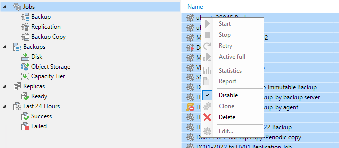 6.Ensure all jobs are successful, right-click all jobs and select disable.
