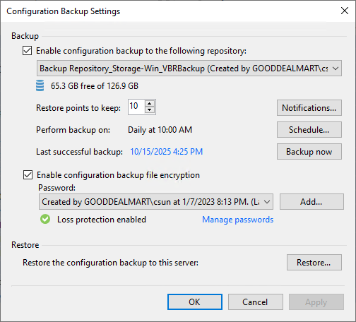 9.Click OK to close the Configuration Backup Settings after the backup is completed.