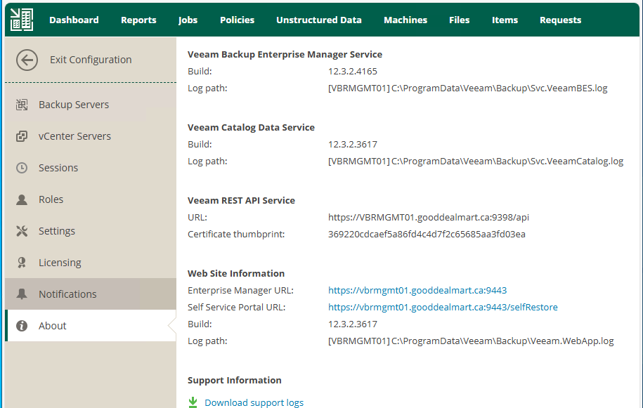 1.Login to the Veeam Backup Enterprise Manager machine.