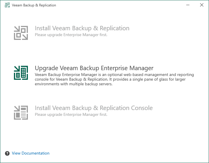 7.Select Upgrade Veeam Backup Enterprise Manager.