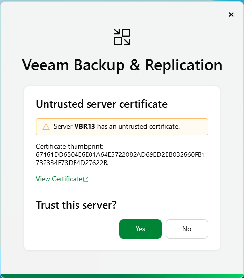 The Veeam Backup & Replication console is installed on the backup server automatically when you install Veeam Backup & Replication v13. You can utilize the web user interface (UI) or install the Veeam Backup & Replication console on a dedicated computer to access Veeam Backup & Replication remotely.
