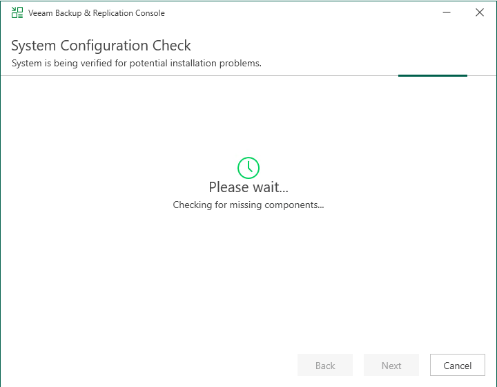 9.On the System Configuration Check page, the setup wizard checks if all prerequisite software is installed on the machine. If required software components are missing, the setup wizard will install them.