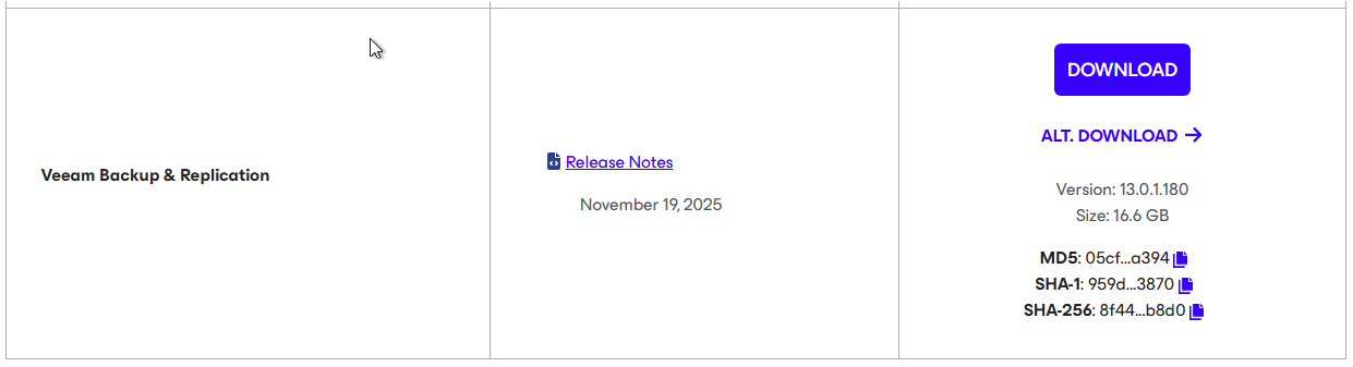 2.Sign in to your Veeam account and download the Veeam Backup and Replication v13 ISO image.