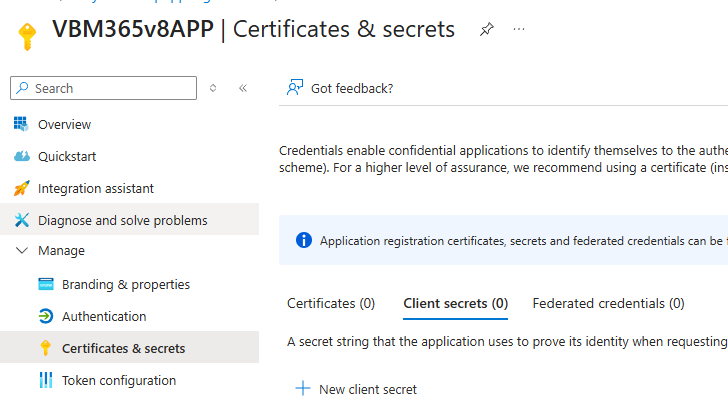 84. Copy the Value, it will be needed for the Application secret of Veeam Backup for Microsoft 365 settings.