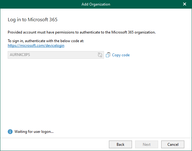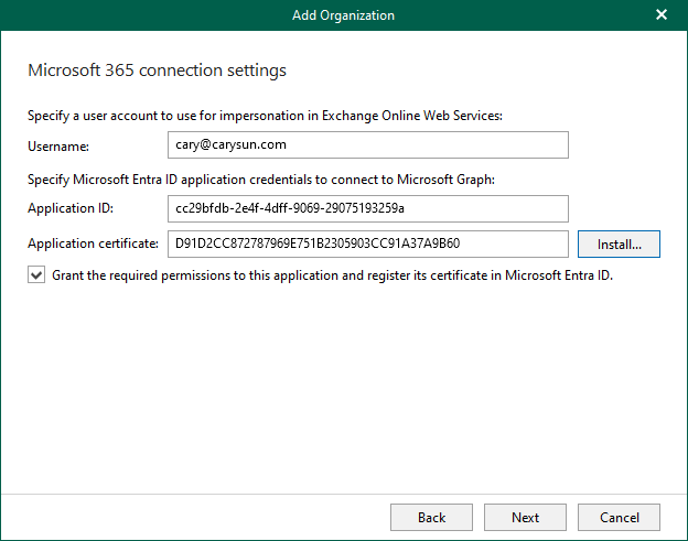 When you add an organization using the modern app-only authentication method, Veeam Backup for Microsoft 365 automatically grants permissions for Microsoft Entra applications.
