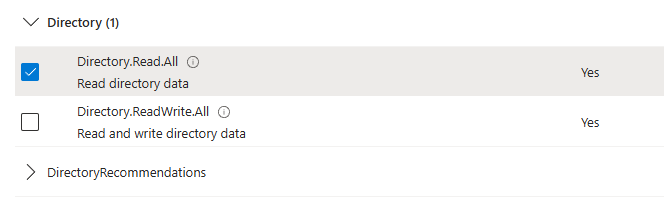 | Microsoft Teams | Microsoft Graph | Directory.Read.All | Application and Delegated |