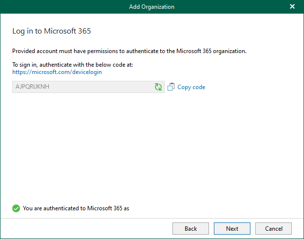 20. Ensure you are authenticated to Microsoft 365 on the Log in to Microsoft 365 page and click Next.