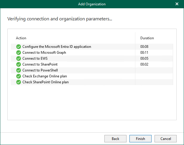 With modern app-only authentication, you cannot use the Veeam Backup account; communication is only possible through the Microsoft Entra application.