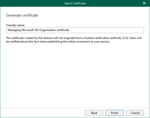 11. Enter the Friendly name of the certificate on the Generate Certificate page and click Finish.
