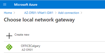 • Name: Type AZ-DR01-VNet1toOFFICECalgary
