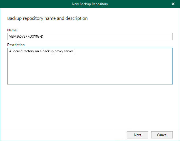5. On the Specify details for backup Repository page, enter the backup repository name in the Name field and click Next.