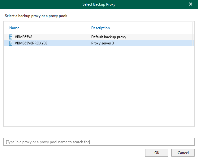 7. On the Backup proxy page, click Select in the Backup proxy or proxy pool.