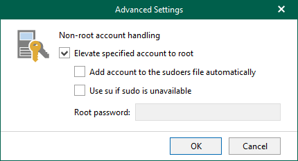 9. Select the Elevate specified account to root on the Advanced Settings page and click OK.