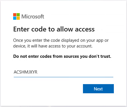 74. On the Log in Microsoft 365 page, click copy code and click the sign-in link.