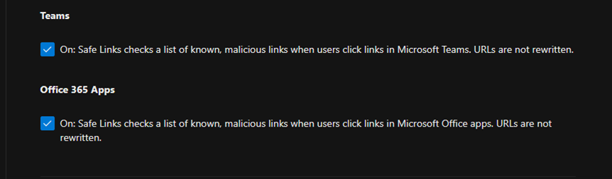 9.On the Teams session of the URL & click protection settings page, Safe Links works across the Microsoft ecosystem. You could leverage that scanning technology within Microsoft Teams and the message contained therein.
