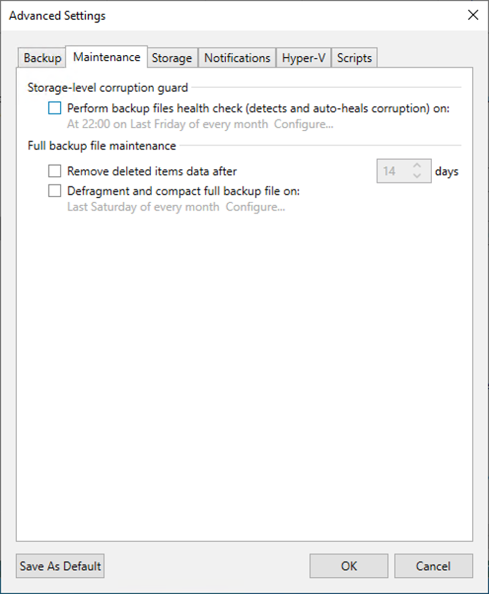 36. To regularly perform a health check on the backup chain’s most recent restore point, select the Perform backup files health check (detects and auto-heals corruption) checkbox in the Storage-level corruption guard section.