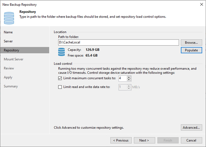 The backup server can function as a cache and primary log backup repository by default, and you can also set up additional repositories to store data in a different location.