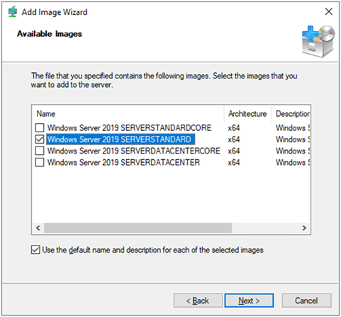On the Available Images, select Windows Server 2019 SERVERSTANDARD and Windows Server 2019 SERVERDATACEBTER, click Next.