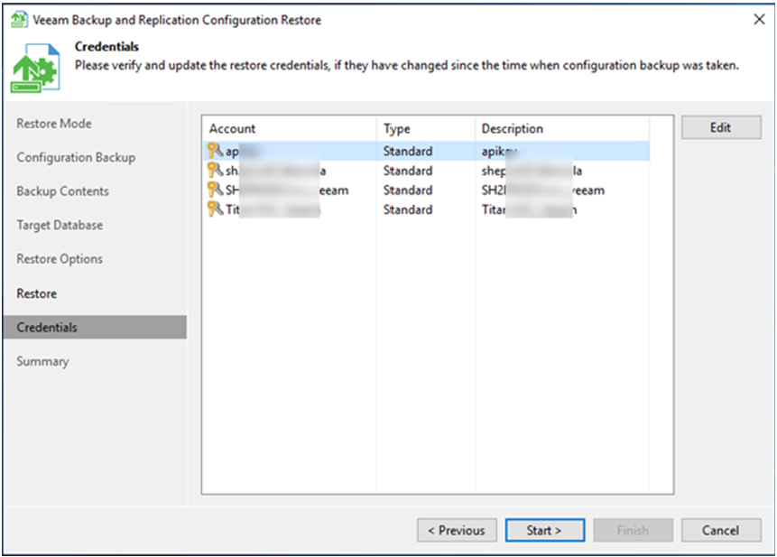 20.On the Credentials page, you need to Edit all credentials for typing their password, click Start.