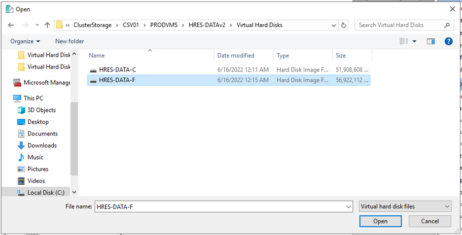 29.Select the unmounted Windows 2012 R2 VHDX file and click Open.