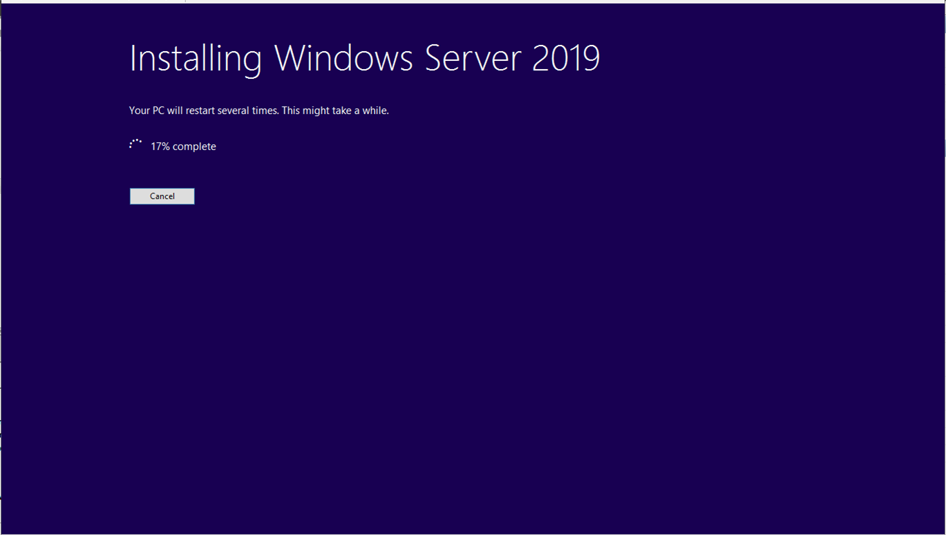 11.The virtual machine will restart serval times when upgrading to Windows Server 2019.