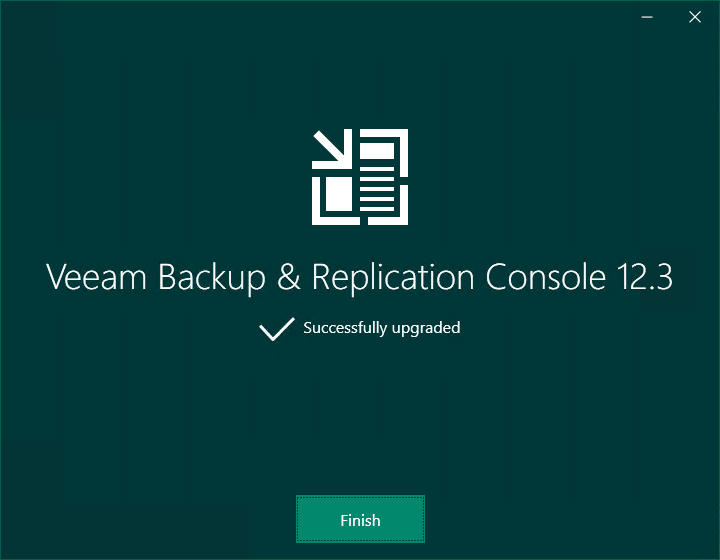 12.Click Finish on the Veeam Backup & Replication Console 12.3 Successfully upgraded page.