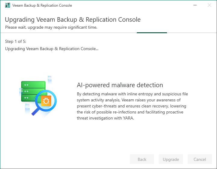 11.There are 5 steps for upgrading the Veeam Backup & Replication Console.
