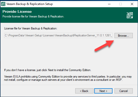 13.On the License Agreement page, select I accept the terms of the Veeam license agreement, and I accept the terms of the 3rd party components license agreements, click Next.