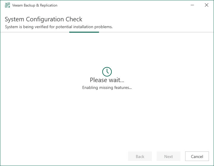 17.On the System Configuration Check page, Veeam will verify and install the required components automatically. The Veeam Backup and Replication Management server may need to reboot.