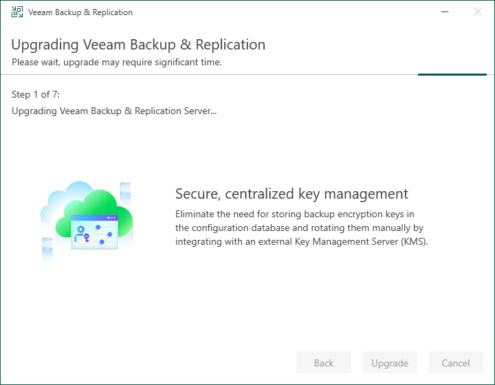19.There are 7 steps for upgrading the Veeam Backup & Replication management server.