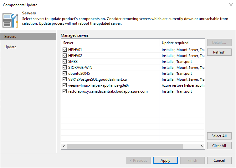23. Select all servers on the Components Update page and click Apply.