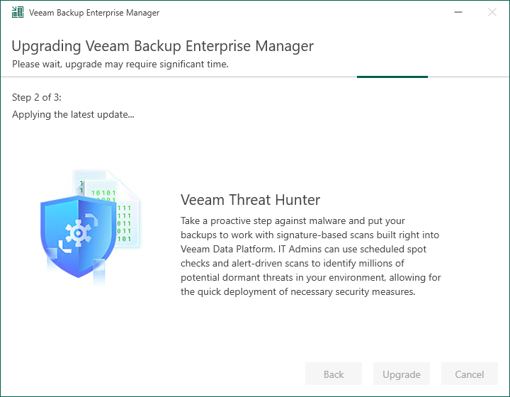 12There are 3 steps to upgrade Veeam Backup Enterprise Manager.