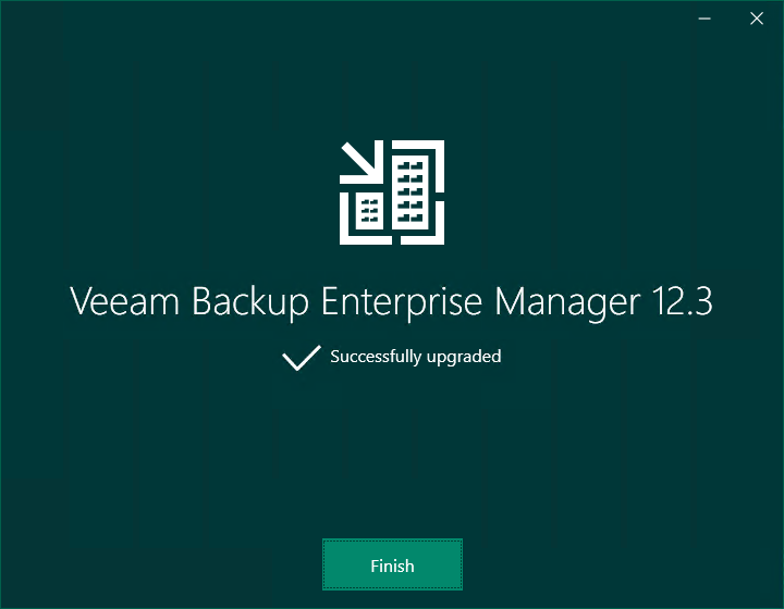 13.Click Finish on the Veeam Backup Enterprise Manager 12.3 Successfully upgraded page.
