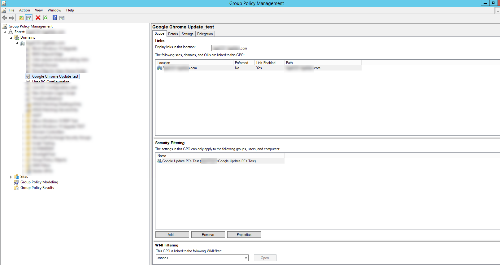 29.Verify the Google Update PCs Test security group was bee added into Security Filtering.