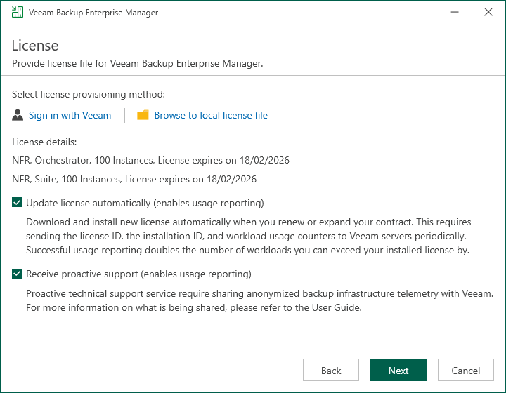 13There are two steps to upgrade Veeam Backup Enterprise Manager.