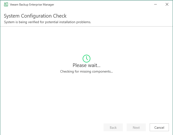 14.On the System Configuration Check page, the setup wizard checks if all prerequisite software is installed on the machine. If required software components are missing, the setup wizard will install them.