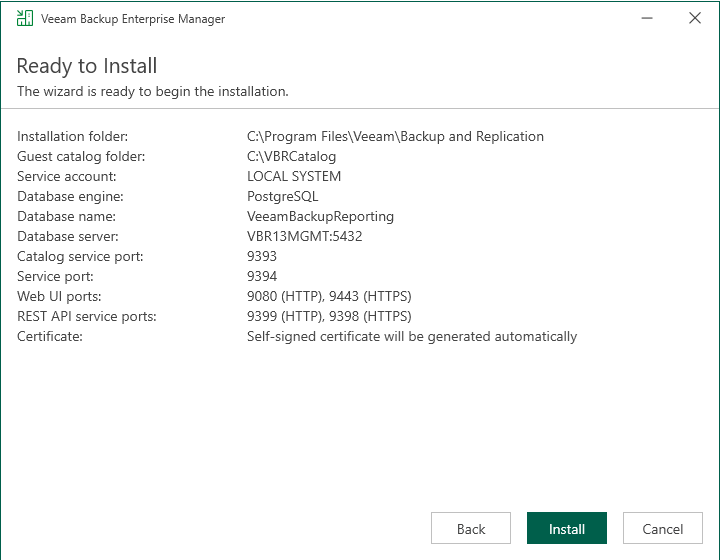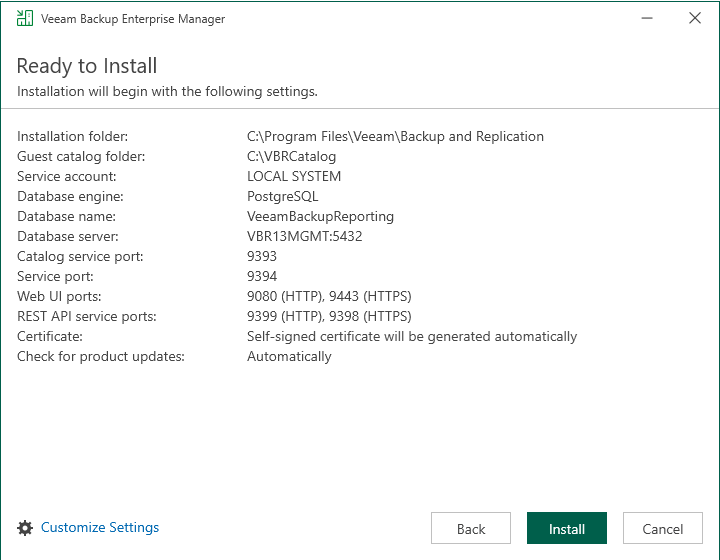 6.On the Veeam Backup & Replication 13 page, click Install.
