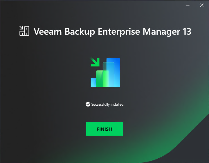 30.Click Finish on the Veeam Backup Enterprise Manager 13 Successfully installed page.