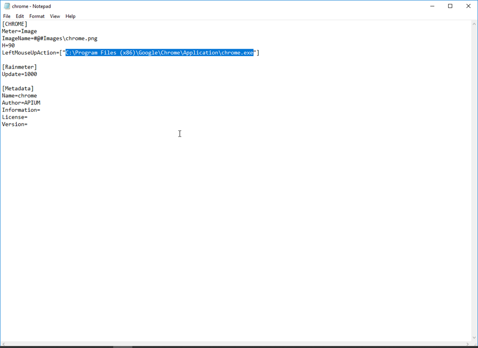 7. Now, you will go inside of This PC>Documents>Rainmeter>Skins>Honeycomb>Chrome and open (the name of your application).ini with notepad.