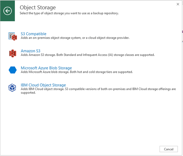 On the Object Storage page, select Microsoft Azure Blob Storage.