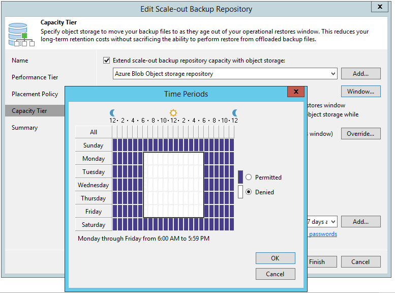 On the Time Periods, please select working hours as Denied time Periods, because it will use full network bandwidth to offload file to Azure Blob.